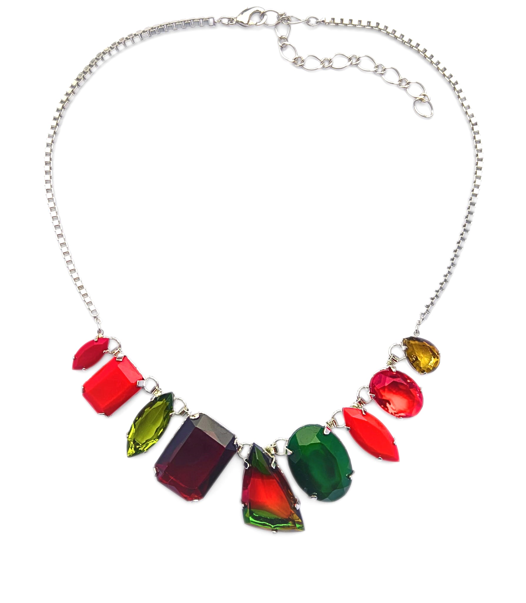 Colorful necklace made from Czech special handmade stones. Lenght 38 cm plus 8 cm adjustable chain. Durable plating.