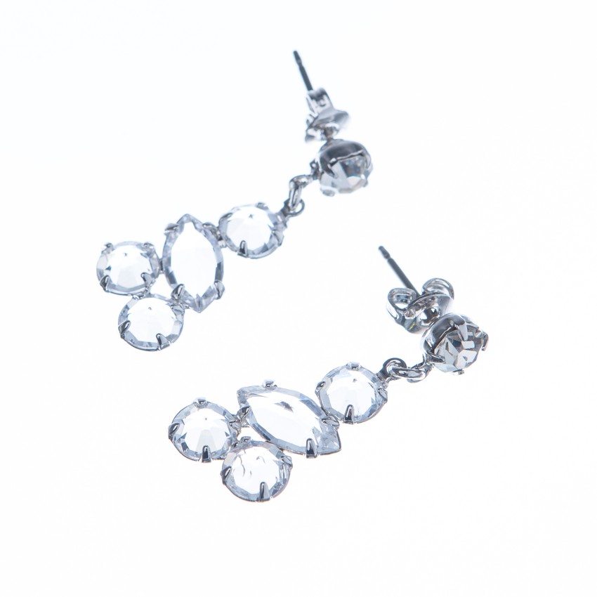 Light earrings made from machinecut navette and chaton rhinestones in crystal color. Lenght 2.5 cm. Pin is made from hypoallergenic titanium. Metal components are plated by silver with extra protection against quick blackening.