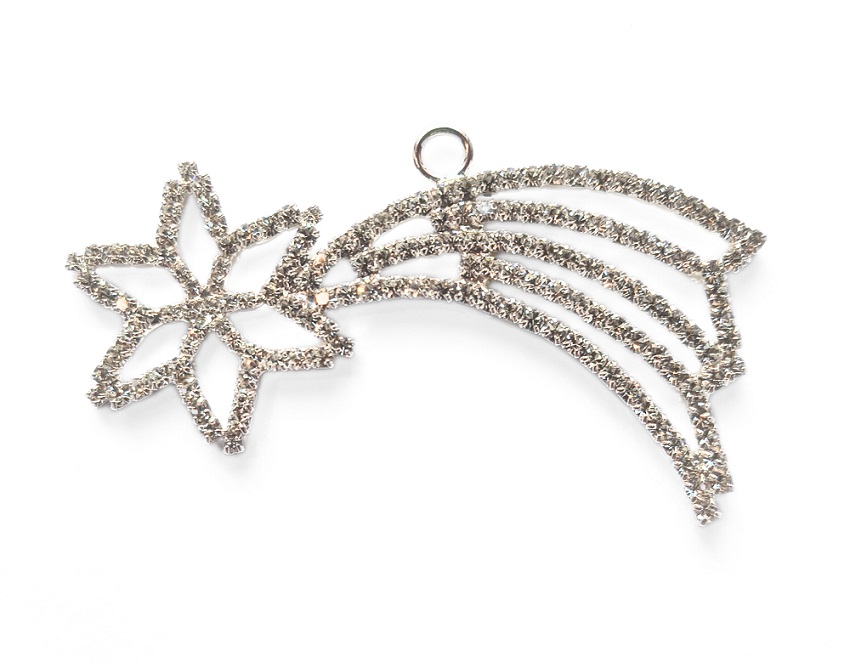 A shimmering comet, a symbol of light and hope, bringing a touch of brilliance to the Christmas season. Crafted from precisely cut crystal chatons that beautifully reflect the light. The metal parts are plated with genuine silver, adding elegance and festive sparkle. Size: 7 × 3 cm
