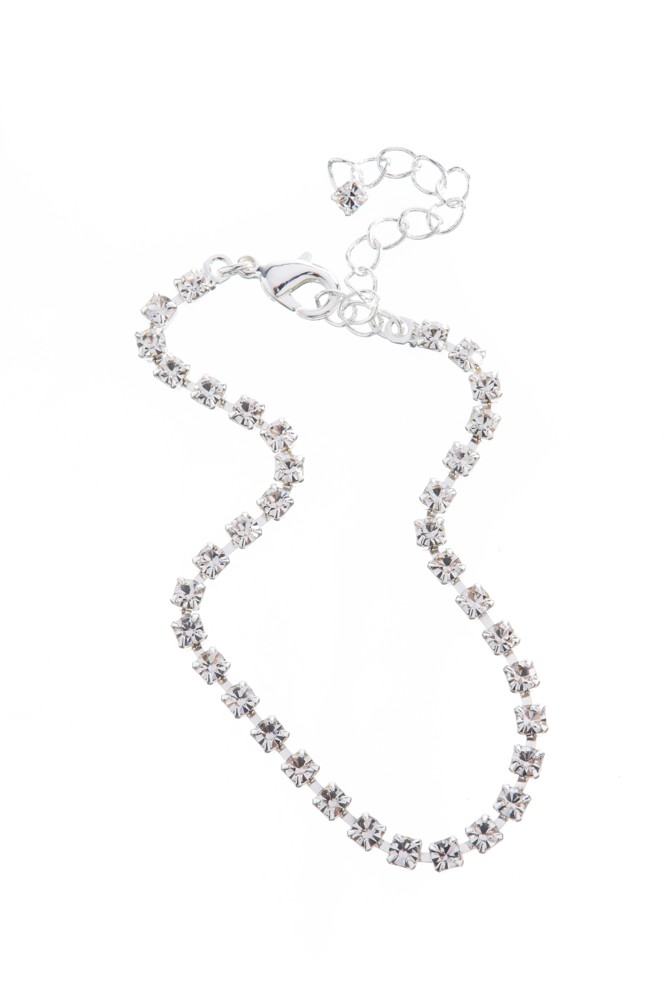 One row strass bracelet made from Czech rhinestones. Lenght 18 cm plus 5 cm adjustable chain. Silver plating.