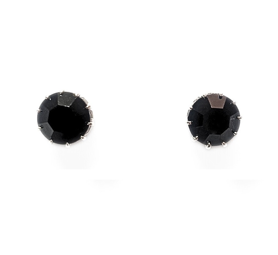 Náušnice pecky s černým krystalkem o velikosti 7 mm. Broušený šaton v barvě jet je zasazen do jemného kotlíku pokoveného pravým stříbrem. Dřík do ucha je vyroben z hypoalergenního titanu.