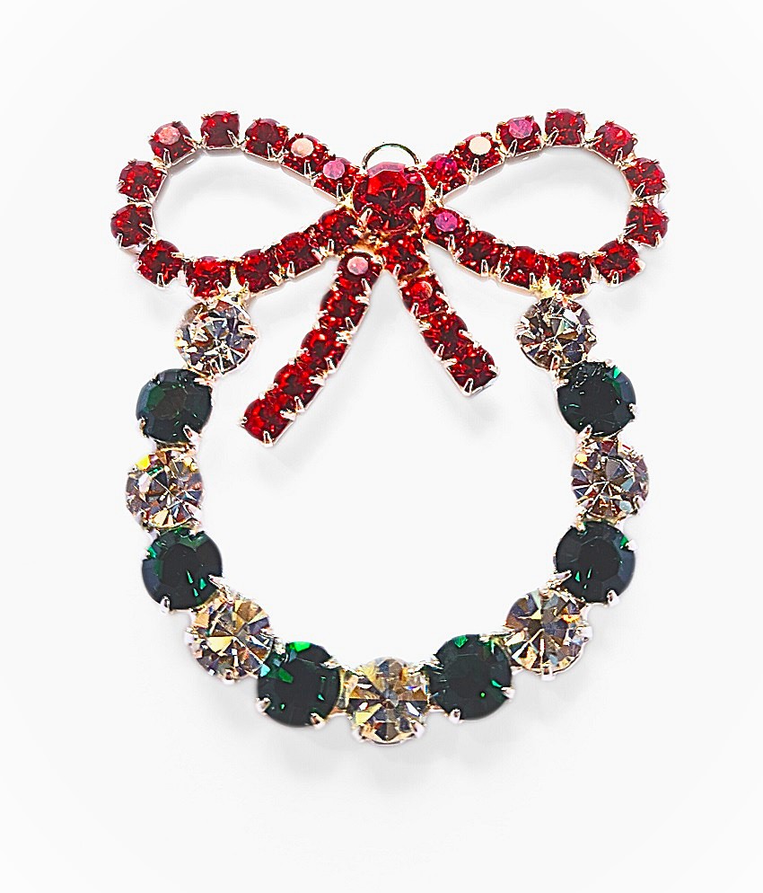 Originální vánoční ozdoba na stromeček, vyrobená z nádherných broušených krystalů v tradičních svátečních barvách. Kovové části jsou pokoveny pravým stříbrem. Velikost dekorace je 60 × 55 mm.