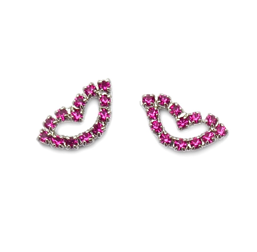 Náušnice ve tvaru rtů o rozměru 14 × 6 mm zaujmou skleněnými šatony v zářivém odstínu Fuchsia – výrazná fialovorůžová barva, která přitahuje pozornost. Kovové části jsou opatřeny odolnou galvanizací na bázi cínu ve stříbřitém odstínu a titanové puzety zajišťují pohodlí při nošení. Ručně vyráběný doplněk s hravým šarmem, který oživí každý outfit.