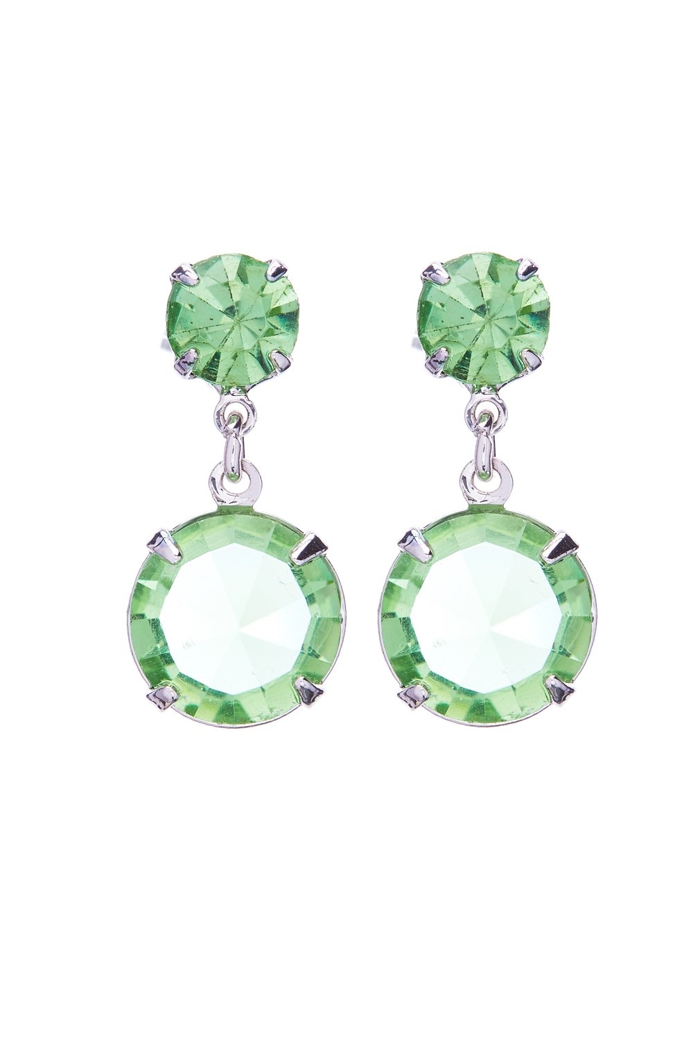 Elegantní náušnice vyrobené z kvalitních českých šatonů v odstínu peridot (světle zelená). Jemné kovodíly jsou galvanicky pokryty vrstvou pravého stříbra a dřík do ucha je z hypoalergenního titanu. Celková délka náušnic je 2,3 cm, přičemž větší spodní kamínek má průměr 10 mm.